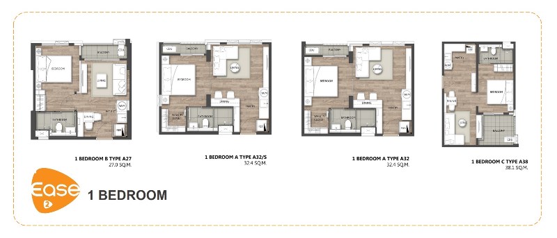 1 ห้องนอน ขนาด 27-38 ตร.ม.