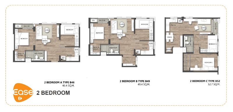 2 ห้องนอน ขนาด 46-52 ตร.ม.