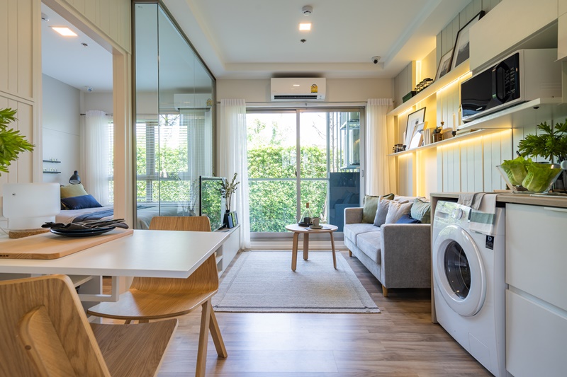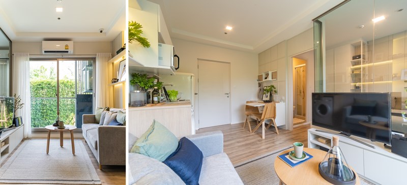 ซึ่งเรามีตัวอย่างห้องให้ดู 3 แบบ คือ แบบ 1 ห้อง ขนาด 27 ตร.ม. แบบ 1 ห้อง ขนาด 32 ตร.ม และแบบ 2 ห้อง ขนาด 46 ตร.ม.