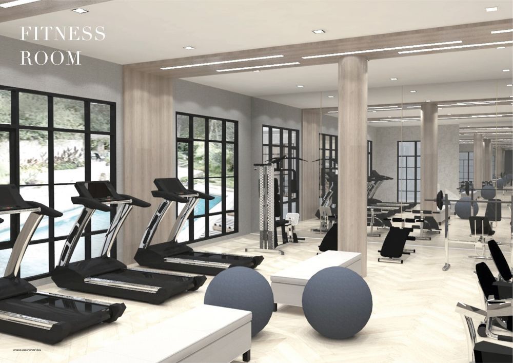 สำหรับเด็กๆ รวมถึงมี Fitness Room ใช้ออกกำลังกายที่มีเครื่องเล่นครบครัน โดยทุกส่วนการดีไซน์เน้นการเล่น texture ลายหินอ่อนตัดกับสีทองที่ดูแล้วดูเรียบหรูสุดๆ