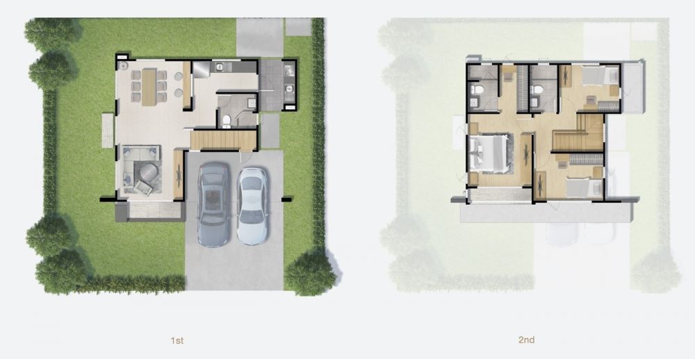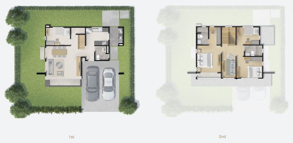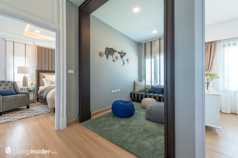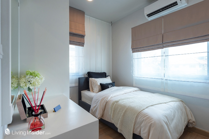 และ 2 ห้องนอนย่อยสามารถวางเตียงขนาดเล็กพร้อมบิวท์อินตู้เสื้อผ้า โต๊ะทำงาน แขวนทีวีติดผนังได้ ส่วนห้องน้ำใช้เป็นส่วนกลางที่ชั้น 2