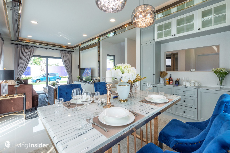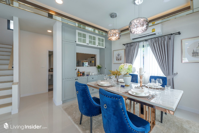 ถัดมาคือส่วนรับประทานอาหารใช้จัดโต๊ะทานอาหาร 4-6 ที่นั่งได้สบายๆ พร้อมมุมชงกาแฟที่สามารถมองทะลุผ่านครัวได้ ช่วยให้บ้านดูโปร่งโล่งขึ้นได้