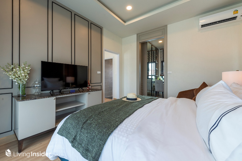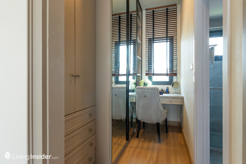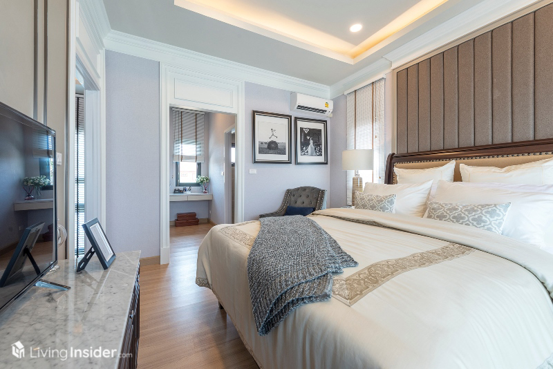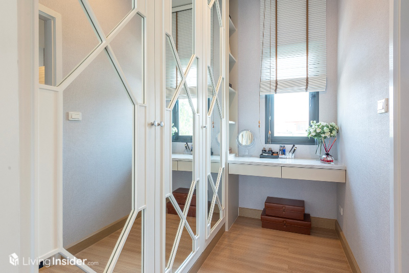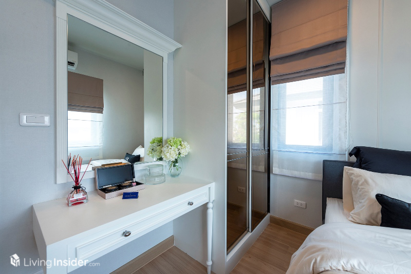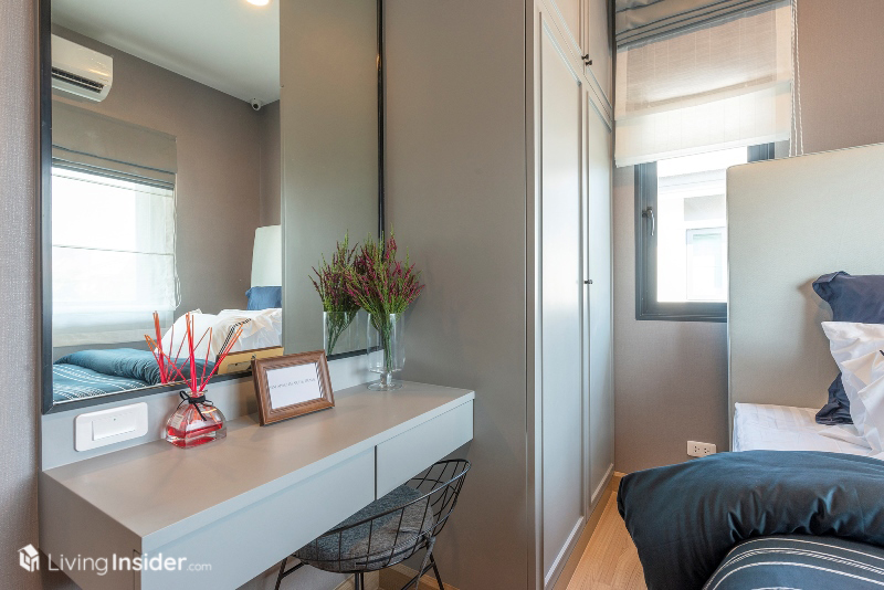 พร้อมบิวท์อินตู้เสื้อผ้า เก็บของ โต๊ะแต่งตัวครบ เรียกได้ว่าห้องนอนนี้ค่อนข้างกว้าง มีพื้นที่ใช้สอยอีกเหลือๆ