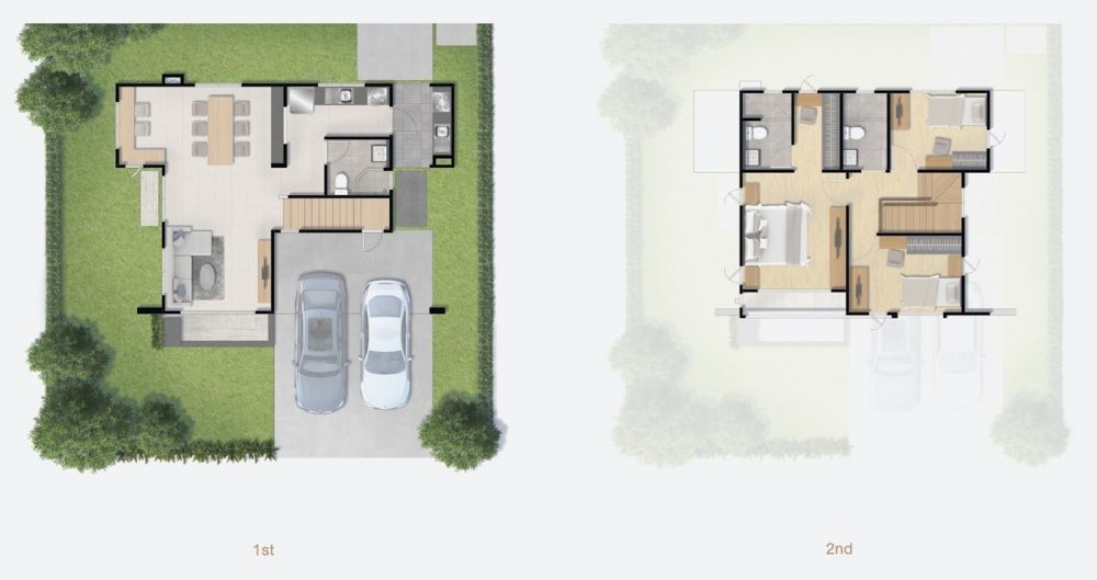 ลองสังเกตเล่นๆ มีอะไรต่างจาก Brompton บ้าง? มุมอเนกประสงค์ นั่นเอง แบบบ้าน Regent พื้นที่ใช้สอยมากกว่าเล็กน้อย (10 ตร.ม.) ประกอบด้วย 3 ห้องนอน 3 ห้องน้ำ จอดรถ 2 คัน เหมาะกับคนต้องการจัดมุมพักผ่อนหรือส่วนทำงานเพิ่มเติมครับ
