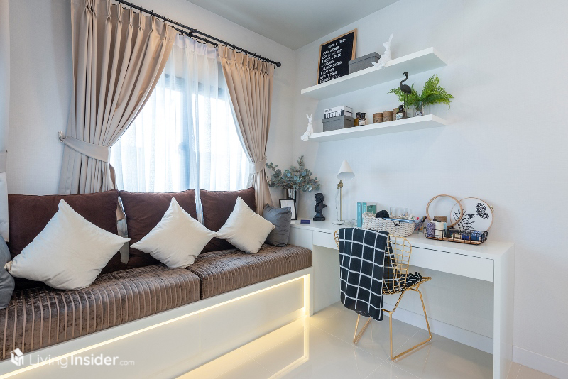ถัดมาคือ ห้องนอนเล็ก สำหรับผู้สูงวัยไม่ต้องเดินขึ้นลงบันได หรือจะปรับเปลี่ยนเป็นห้องทำงานก็ได้เช่นกัน