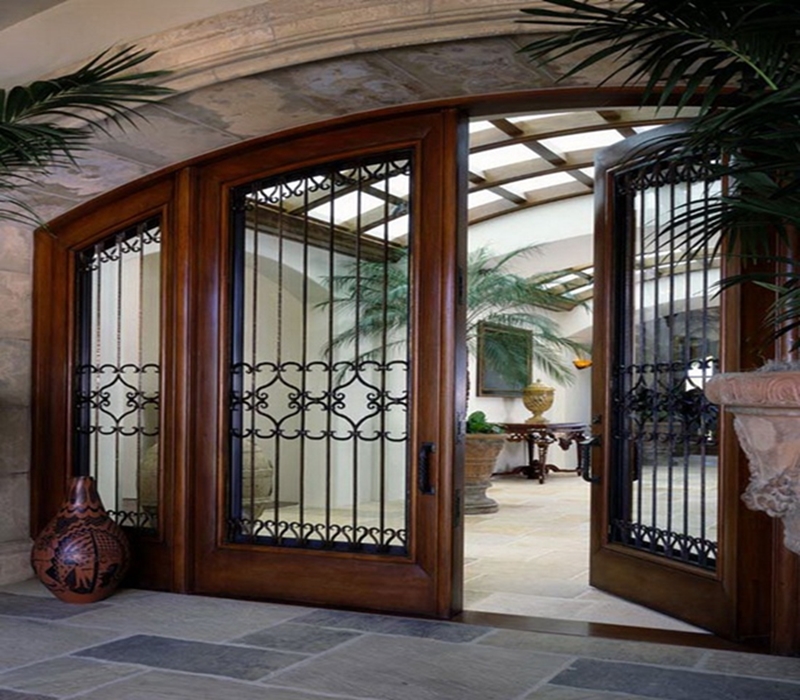 ไอเดียประตูบ้านสวยๆ ถัดมาจะเป็นประตูบ้านสไตล์เมดิเตอร์เรเนียนครับ ซึ่งอาจจะดูแปลกตาไปสักหน่อยสำหรับในบ้านเราแต่สวยงามไม่ใช่เล่นเลยล่ะครับ โดยประตูจะเป็นซุ้มโค้งกว้างๆ หน่อยแบ่งเป็น 4 ช่วง แต่ละช่วงจะเป็นขอบไม้และตรงกลางเปนกระจก เสริมความปลอดภัยด้วยเหล็กดัดลวดลายสวยงาม ประตูแบบนี้จะเหมาะกับการตกแต่งด้วยหินอ่อนและต้นไม้ครับ ดูเข้ากันมากๆ