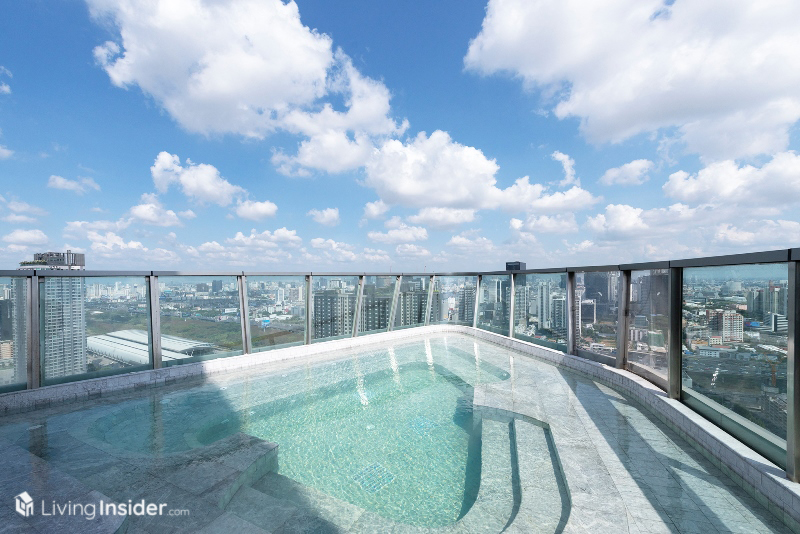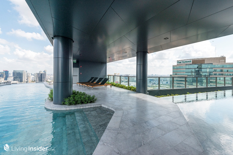 ส่วนกลางหลักทั้งหมดอยู่บนชั้น 36 ประกอบด้วยสระว่ายน้ำพร้อม Jaguzzi ที่สามารถเทควิวเมืองย่านอโศกได้แบบ Panoramic รวมถึงมี Kids Pool สำหรับเด็ก และยังมีห้องน้ำพร้อมซาวน่าแบ่งชายหญิง ในส่วนนี้ออกแบบด้วยการใช้หินขัด ได้กลิ่นอายโมเดิร์นลอฟท์ที่เรียบหรูแฝงความเท่ห์อยู่ในตัว สวยเลยทีเดียวครับ