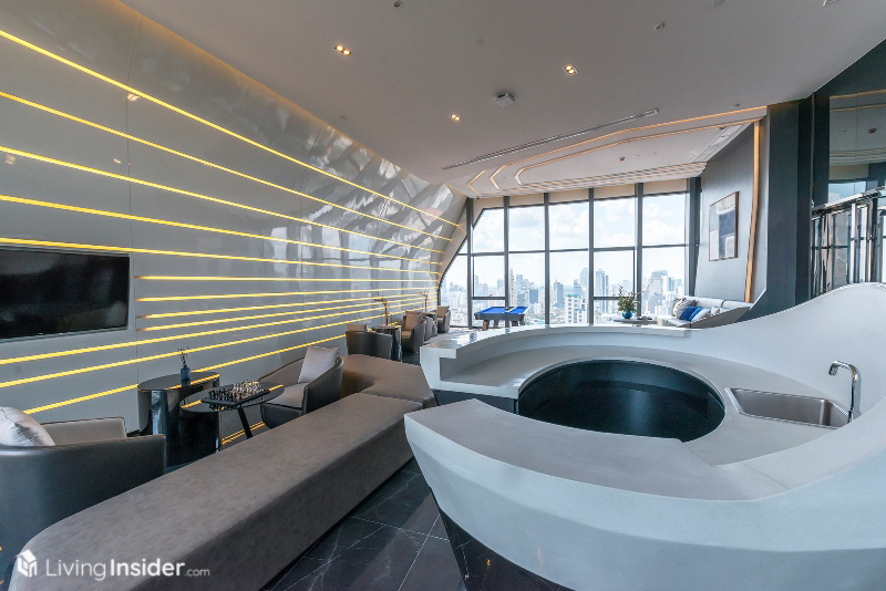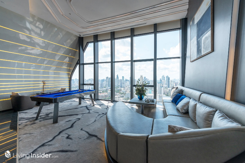 ถัดมาคือ Sky Lounge พื้นที่ Common Area รองรับลูกบ้านสามารถใช้พักผ่อน เล่นโต๊ะพูล จัดปาร์ตี้เล็กๆ พร้อมเทควิวเมืองภายนอกได้ หรืออยากนั่งทำงานด้านในก็มี Co-Working Space, Library บรรยากาศเป็นส่วนตัว ที่ได้วิวด้าน มศว. - อโศก