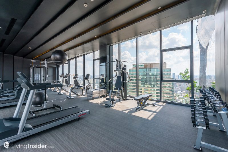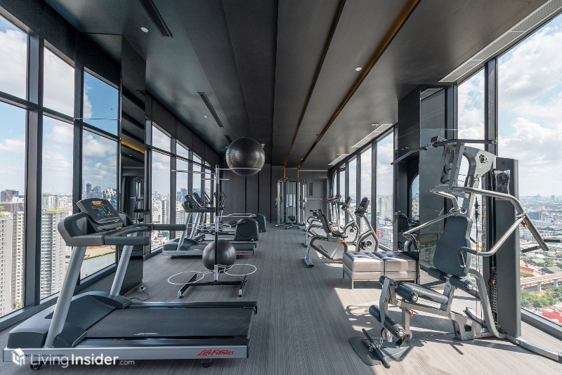 ส่วน Cloud Fitness ขนาดพอเหมาะพร้อมมีเครื่องเล่นรองรับลูกบ้าน โดยสามารถออกกำลังกายพร้อมเทควิวเมืองภายนอกได้อย่างเต็มตาด้วยกระจกเต็มใบขนาดใหญ่ตลอดแนว เป็นส่วนห้องฟิตเนสที่ดูโปร่งโล่งเลยทีเดียว