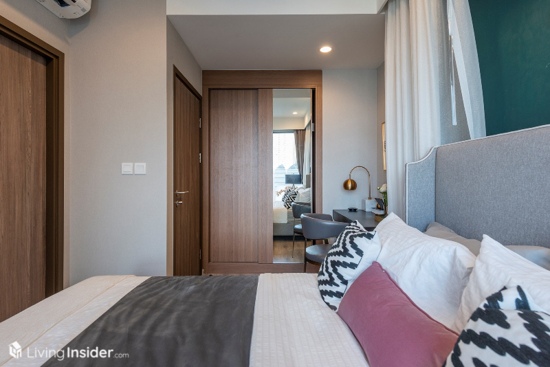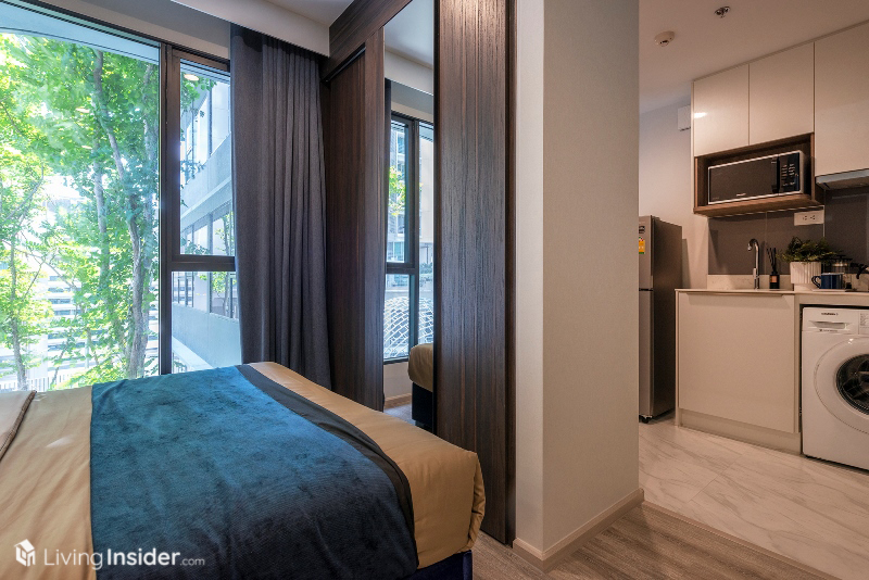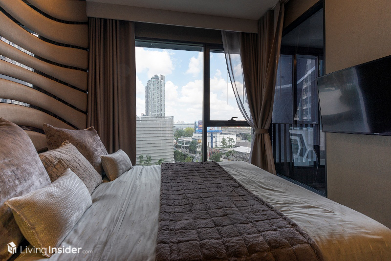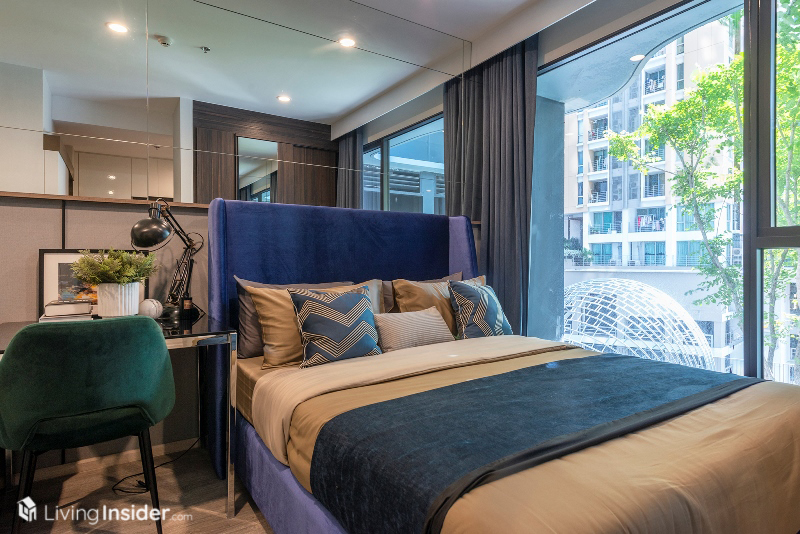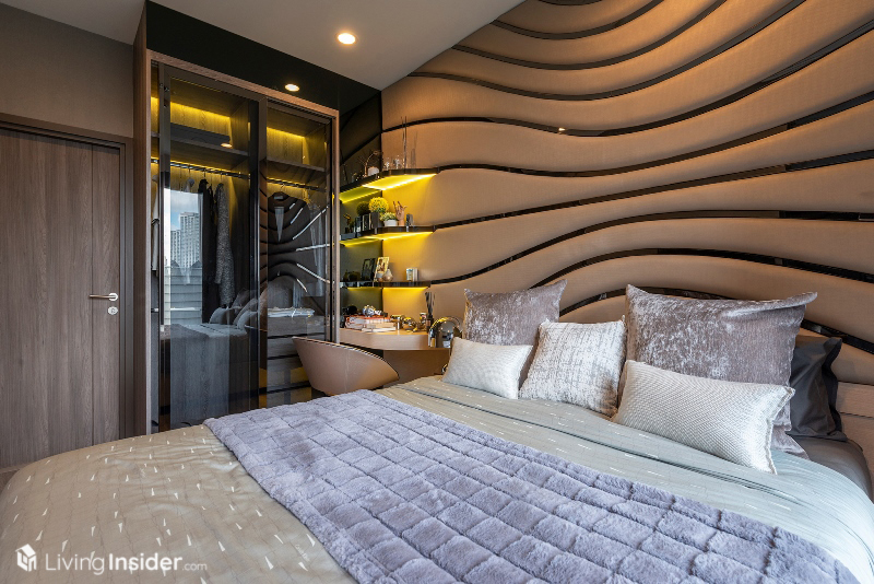 ด้านในวางเตียงขนาด 5 ฟุตพอดี มีพื้นที่วางตู้ข้างเตียง บิวท์อินตู้เสื้อผ้าได้และยังเหลือพื้นที่เหลือพอสำหรับเดินรอบเตียงเล็กน้อย โดยส่วนนี้จะอยู่ติดกับหน้าต่างบานใหญ่เต็มบานเทควิวเมืองได้เต็มๆ ด้วยหน้าต่างขนาดใหญ่นี้บอกเลยว่าตอนกลางวันไม่ต้องเปิดไฟเน้นแสงธรรมชาติ 100% ช่วยประหยัดไฟไปได้ในตัว