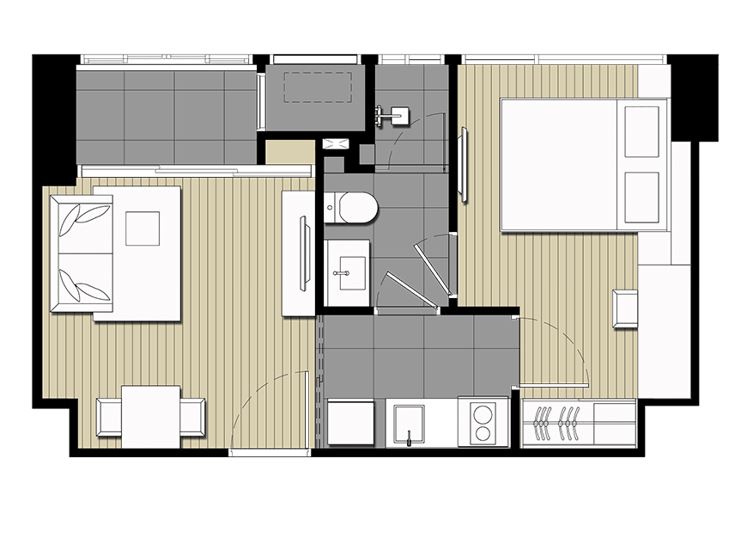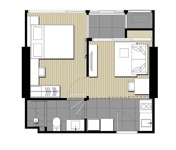 ยูนิตขนาดน่ารัก เหมาะสำหรับผู้อาศัย 1-2 คน แบ่งพื้นที่ใช้สอยได้อย่างลงตัวทั้งนั่งเล่น ห้องนอน และครัวแบบปิด ขนาดเริ่มต้น 24-28 ตร.ม. ปัจจุบันเหลือเฉพาะยูนิตรีเซลเท่านั้น