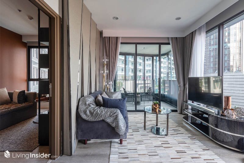 เชื่อว่าหลายคนชอบ 1-Bedroom มีหน้ากว้างพิเศษแยกพื้นที่ Living จาก Bedroom อย่างชัดเจน เพิ่มความเป็นส่วนตัวได้อีก พร้อมระเบียงใหญ่ Semi-Outdoor สามารถเลื่อนปิดกระจกนอก หากต้องการเพิ่มพื้นที่ใช้สอยเป็นห้องอเนกประสงค์ เหมาะกับอาศัย 1-2 คนครับ