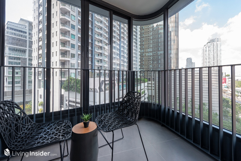 ระเบียงยังคงรูปแบบ Semi-Outdoor เช่นเดิม แต่มีขนาดเล็กกว่า 1-Bedroom เล็กน้อย เหมาะกับจัดเป็นพื้นที่นั่งชมวิวจิบไวน์อร่อยๆ ในยามค่ำคืนมากๆ ครับ