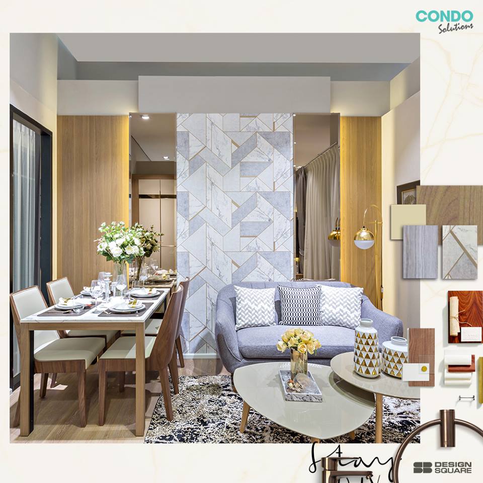 โครงการสุดฮอตที่เชื่อว่าหลายๆ คนต้องรู้จักเป็นอย่างดีซึ่งนี่จะเป็นขนาด 52 ตร.ม. ที่ทาง SB Design Square ได้ตกแต่งห้องนี้ในสไตล์ Classy Urban สะท้อนรสนิยมที่เรียบหรูในแบบคนเมืองยุคใหม่ เน้นการตกแต่งด้วยการใช้สีเอิร์ธโทนล้อไปกับวัสดุลายหินอ่อนเพิ่มความมีระดับ น่าหลงใหล สลับกับลูกเล่นสีทองยกระดับความมีคลาสในแบบคนเมืองได้เฉียบสุดๆ และในส่วนของเฟอร์นิเจอร์เลือกใช้เฟอร์นิเจอร์ลายไม้ที่ช่วยยกระดับการตกแต่งในสไตล์ CLASSY URBAN ให้กลมกล่อมได้อย่างไม่น่าเชื่อ