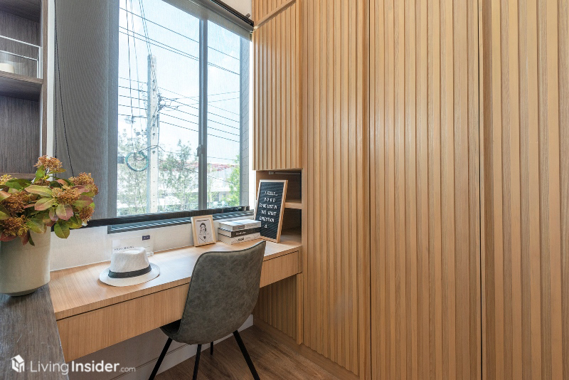 ถัดมาเป็นส่วน Pantry สำหรับเตรียมอาหารเช้า ชงกาแฟ และมีพื้นที่ให้วางโต๊ะอาหารขนาด 3-4 ที่นั่งได้