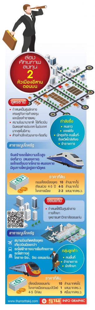 บริษัทพัฒนาที่ดินรายใหญ่ ขยับเข้าพื้นที่จังหวัดอุดรธานี กันมาก จากศักยภาพความเป็น ศูนย์กลางความเจริญทางเศรษฐกิจการค้าการลงทุนอีสานตอนบน, เมืองชายแดน, การลงทุน โครงข่ายลงทุนโครงสร้างพื้นฐาน ทางเลี่ยงเมือง รถไฟทางคู่ รถไฟความเร็วสูงของจีนก่อสร้างจากนครเวียงจันทน์ สปป.ลาวมาจอดรอท่า เพียงรอรถไฟไทยจีน จากไทย ระยะ 2 ลากต่อจากโคราชไปหนองคาย โดยมีสถานีใหญ่ที่อุบลราชธานี