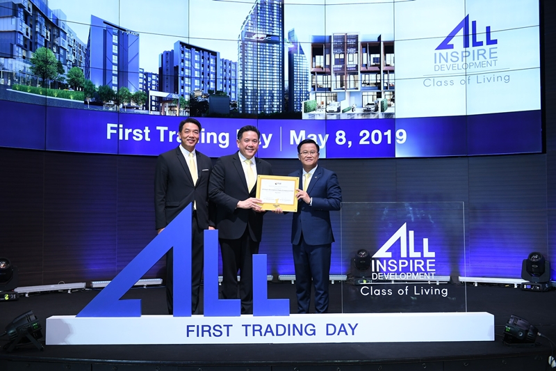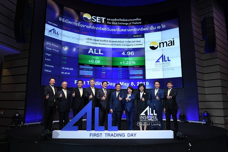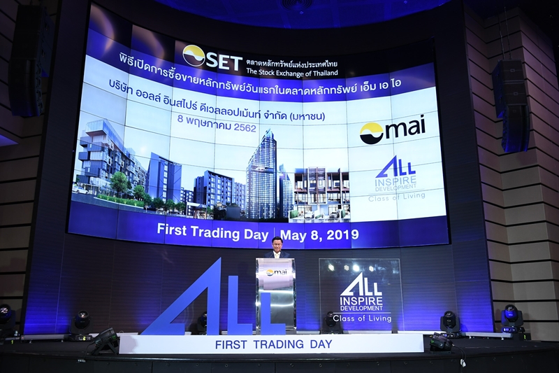 หุ้นสามัญของบริษัทฯ ได้เข้าทำการซื้อขายในตลาดหลักทรัพย์เอ็ม เอ ไอ (mai) ในกลุ่มอุตสาหกรรมอสังหาริมทรัพย์และก่อสร้าง หมวดธุรกิจพัฒนาอสังหาริมทรัพย์ ในวันนี้เป็นวันแรก (8 พฤษภาคม 2562) เปิดทำการซื้อขายที่ระดับ 4.94 บาท เพิ่มขึ้น 0.82% จากราคา IPO ที่ 4.90 บาท ซึ่งถือว่าประสบความสำเร็จอย่างมาก และเป็นการสะท้อนถึงความเชื่อมั่นในธุรกิจของ ALL ทั้งนี้ต้องขอบคุณผู้ถือหุ้นและนักลงทุน ที่ให้การตอบรับ ALL เป็นอย่างดี