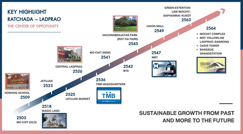 “แยกลาดพร้าวรัชดาเป็นจุดตัดของความหลากหลาย” มีทั้งแหล่งงานสำหรับคนรุ่นใหม่ บริษัท Start up ที่ตั้งอยู่บริเวณนี้เต็มไปหมด (ปีล่าสุดชาวต่างชาติจากทั่วโลกโหวตให้กรุงเทพฯ เป็นเมืองแห่ง Start up อันดับ 7 ของโลก) จากภาพนี้คุณจะเห็นว่า นี่เป็นทำเลดาวรุ่งพุ่งแรงจริงๆ การพัฒนาของทำเลมีมาตลอดทางหลายสิบปีแล้ว ลองดู Timeline สรุปการเปลี่ยนแปลงที่สำคัญของทำเลนี้แล้วจะเห็นภาพชัดเจนขึ้นครับ