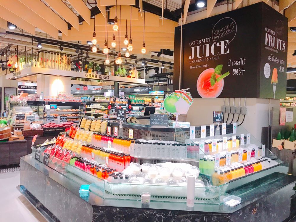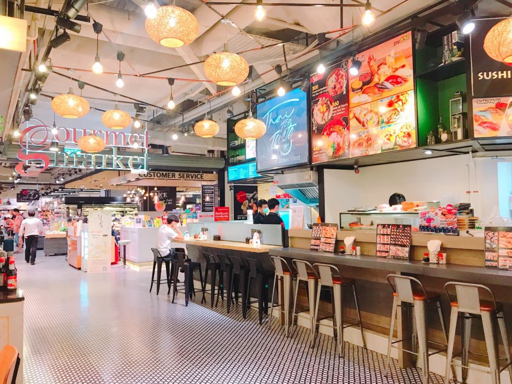 เน้นสินค้าบริโภค ประเภท Grab and Go ร้านอาหารระดับห้าดาวที่รังสรรค์โดยเชฟฝีมือคุณภาพ และร้านอาหารประเภท Take Home ภายใน Gourmet Market แห่งนี้ แบ่งออกเป็น 2 โซนใหญ่ๆ ด้วยกันครับ โซนแรกจะเป็นร้านอาหาร มีทั้งแบบสั่งแล้วนั่งทานได้เลย หรือแบบซื้อกลับบ้านก็ได้เช่นกัน