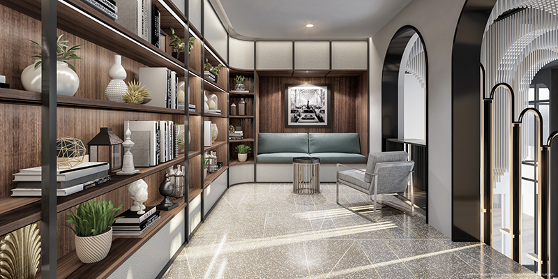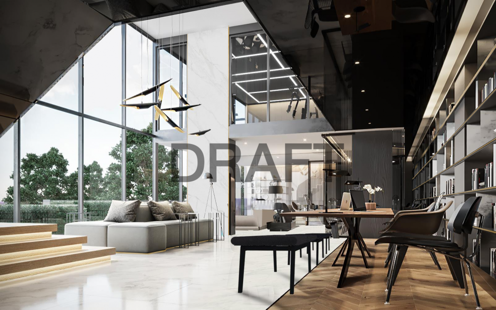 ตัดด้วย เฟอร์นิเจอร์ และพื้นไม้ สีน้ำตาลบางส่วน เพิ่มความรู้สึกอบอุ่นให้เหมือนอยู่บ้าน ใช้กระจกสูงเปิดรับช่องแสงและการระบายอากาศ และเสริมความสง่างามโอ่โถ่ง ออกแบบแต่ละพื้นที่การใช้สอยให้ได้รับประสบการณ์มุมมองจากแต่ละพื้นที่ที่แตกต่างกัน ไม่น่าเบื่อเหมาะกับ ไลฟ์สไตล์ของคนรุ่นใหม่ที่มีการใช้ชีวิตในเมืองแบบ Connect & Share