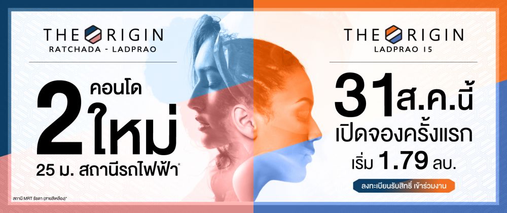#เปิดจองครั้งแรก 31 ส.ค. นี้ "THE ORIGIN’’ 2 โครงการใหม่ทำเล "รัชดา- ลาดพร้าว" ย่านไลฟ์สไตล์สุดฮิป ใกล้จุดตัด New Interchange #สายสีน้ำเงิน #สายสีเหลือง จาก 2 โครงการ 2 ทำเล จากแบรนด์สุดฮอต ดิ ออริจิ้น ลาดพร้าว 15 l 600 ม. จากสถานี MRT ลาดพร้าว เริ่ม 1.79 ลบ.*