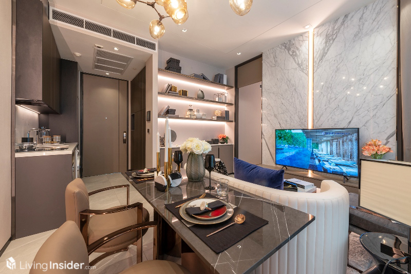 ไฮไลท์ของการขายแบบ Fully Furnished อย่างเห็นได้ชัดคือ สามารถย้ายกระเป๋าเข้ามาพร้อมอยู่ได้เลย ไม่ต้องเสียเวลาไปเลือกซื้อของ ไม่ต้องเสียเงินในการจ้างขนย้ายเฟอร์นิเจอร์ชิ้นใหญ่ๆ เหมาะสำหรับคนที่ซื้ออยู่เอง หรือลงทุนด้วยการปล่อยเช่าก็สบายเลย เพราะไม่ต้องเตรียมอะไรให้มีครบหมด แถมโครงการออกแบบเข้าเซตกันมาให้เสร็จสับ