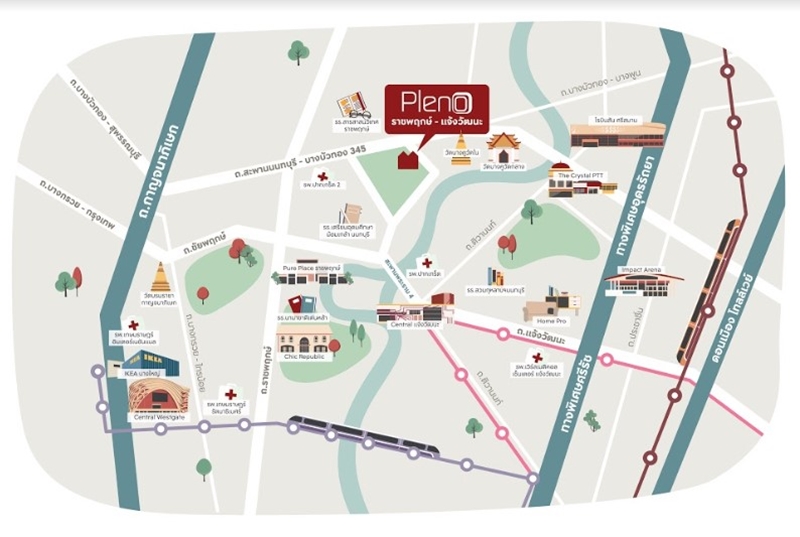 สำหรับการเดินทางมา โครงการ Pleno ราชพฤกษ์-แจ้งวัฒนะ สามารถเข้า-ออกได้ 2 เส้นทางหลัก ได้แก่