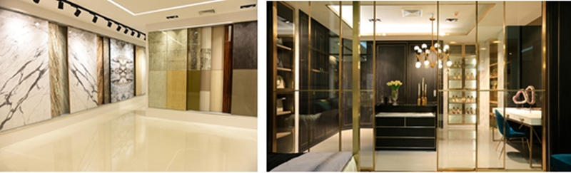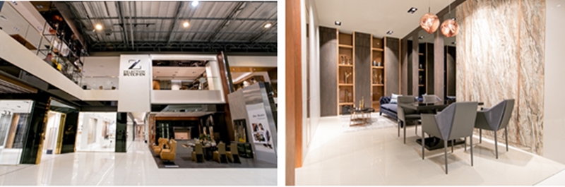 เช่น ไม้นำเข้าจากยุโรปที่มีขนาดใหญ่ สามารถนำไปออกแบบกับงานที่มีฝ้าสูง 3 เมตร ทำให้ได้งานบิลท์อินที่สวยอลังการแบบไร้รอยต่อ, วัสดุผ้าที่ผสมทองคำจริง ให้ลวดลายที่แปลกตาและผิวสัมผัสที่แปลกใหม่, วัสดุอลูมิเนียม ซึ่งพิเศษตรงที่มีกระบวนการชุบ (Anodize) เช่นเดียวกับการชุบตัวเรือน Luxury Watch ของแบรนด์ดัง จึงทำให้ได้อลูมิเนียมที่มีความสวยหรูหราและเงางามเป็นพิเศษ เป็นต้น แต่ถ้าเห็นวัสดุแล้วยังจินตนาการไม่ออกว่าจะเลือกไปออกแบบมิกซ์แอนด์แมตช์ยังไงให้สวยได้อย่างใจ ที่นี่โซนนี้ก็มีห้องตัวอย่างให้ดูถึง 24 ห้องให้ดูไอเดียอีกด้วย