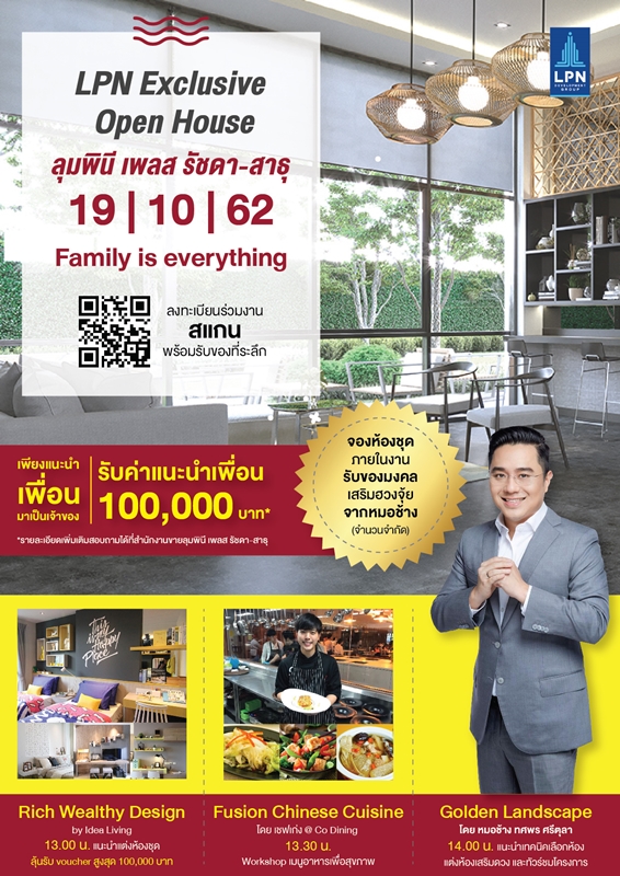 LPN พร้อมส่งมอบความสุขในกิจกรรม “LPN Exclusive Open House” โครงการ “ลุมพินี เพลส รัชดา-สาธุ” ใกล้เซ็นทรัลพระราม 3 แก่ลูกค้าที่กำลังจะโอนกรรมสิทธิ์ ในบรรยากาศสบายๆ สไตล์ Chinese คอนเซ็ปต์ “Family is everything” พร้อมขยายความสุขของครอบครัวในบ้านหลังใหญ่แก่กลุ่มลูกค้าเป้าหมายคนไทยเชื้อสายจีน