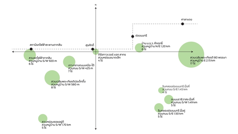 สองศิลปิน วีร์ วีรพร และ วิชชุลดา ปัณฑรานุวงศ์ ได้ทำการสำรวจพื้นที่สีเขียวที่ซุกซ่อนตัวอยู่ท่ามกลางตึกสูงระฟ้าใจกลางเมืองในบริเวณเขตสาทรโดยมีจุดศูนย์กลางเป็นภิรัชทาวเวอร์ แอท สาทร พบว่าในเขตสาทรนี้มีสวนสาธารณะและพื้นที่สีเขียวมากถึง 10 แห่ง อาทิ สวนรถไฟฟ้าตากสิน สวนหย่อมซอยอยู่ดี และ สวนเฉลิมพระเกียรติ 80 พรรษา เป็นต้น