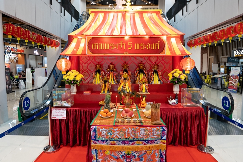 โดยอัญเชิญเทพเจ้าทั้ง 8 องค์ อาทิ 5 เทพเจ้า หรือ โหงวหวังเอี๊ย (ฟ่านฝู่, อู๋ฝู่, หลี่ฝู่, ฉือฝู่ และ จูฝู่) ไหว้เสริมดวงเรื่องการงานราบรื่น, พระโพธิสัตว์กวนอิม ไหว้ขอพรเสริมมงคลชีวิต, เทพเจ้าจงจินหู่ ไหว้ขอพรเรื่องความสำเร็จ และ เทพเจ้าวั่นซ่านเหย (ไฉ่ซิงเอี้ย) ไหว้ขอพรเรื่องโชคลาภเงินทอง พร้อมแห่ขบวนมังกรทอง สิงโตจีน รอบศูนย์การค้าฯ เพื่อความเป็นสิริมงคล