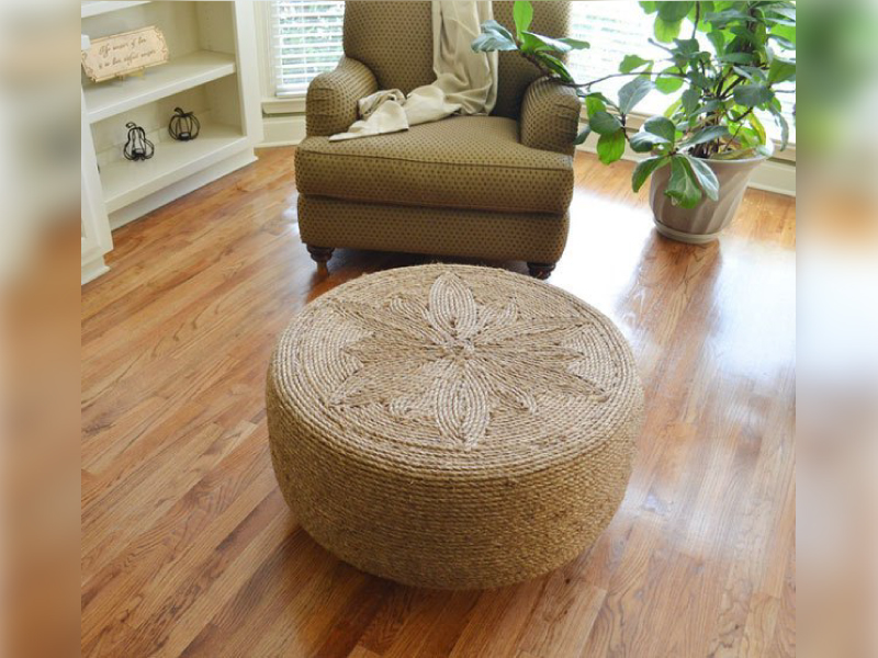 ถ้าผมไม่บอกว่าข้างในเป็นยางรถยนต์จะมีใครเดาออกมั้ยครับ ? ถือว่าปลอมตัวได้เนียนมาก แถมสวยอีกต่างหาก อันนี้เป็นการนำยางรถยนต์เหลือใช้มาพันด้วยเชือกแบบ DIY เองได้เลยครับ ใช้เป็นโต๊ะกลางก็ได้ หรือจะเพิ่มเบาะด้านบนเป็นเก้าอี้ก็ได้นะครับ ปรับใช้ได้ตามความเหมาะสมของแต่ละบ้านเลย สารพัดประโยชน์มาก ๆ ครับ