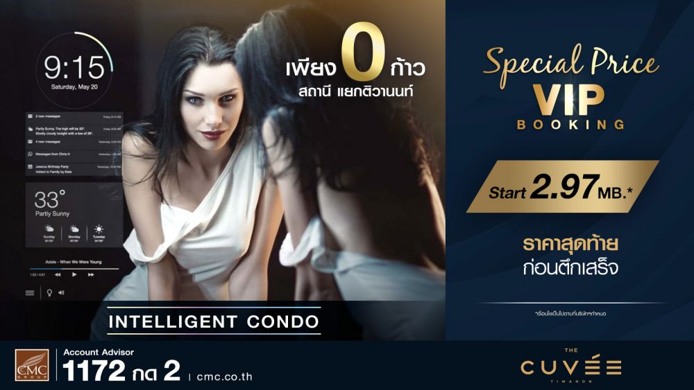 ล่าสุดนำนวัตกรรมสุดล้ำ เข้ามาเพิ่มความสะดวกสบายในการอยู่อาศัยให้กับลูกบ้าน CMC ในยุค New Normal โดยนำ Smart Mirror กระจกอัจฉริยะที่แสดงข้อมูลต่าง ๆ เช่น สามารถพยากรณ์อากาศ อุณหภูมิปัจจุบัน แสดงวัน – เวลา จดกำหนดการ และนัดหมาย ซึ่งจะเป็นประโยชน์กับ Lifestyle ในอนาคตของผู้อยู่อาศัยเสมือนมีเลขาส่วนตัว โดยเพิ่มนวัตกรรม Smart Mirror ทุกยูนิตของโครงการ เดอะ คิวเว่ ติวานนท์ – The Cuvee Tiwanon