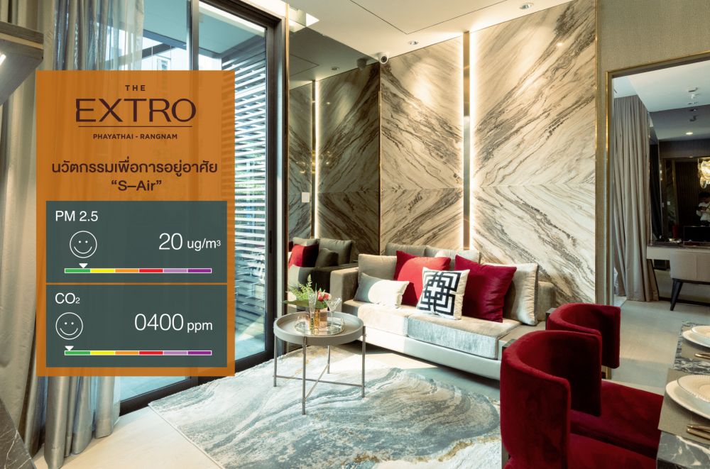 เดินหน้าพัฒนา ดิ เอ็กซ์โทร พญาไท – รางน้ำ (THE EXTRO Phayathai-Rangnam) ให้เป็นโครงการต้นแบบเพื่อคุณภาพชีวิตดีอย่างยั่งยืน ชูจุดเด่นอากาศสะอาด 360 องศา ทั้งส่วนภายในห้องพักทุกยูนิตที่รองรับด้วยนวัตกรรมเพื่อการอยู่อาศัย เอส แอร์ (S-Air) และส่วนภายนอกที่เปิดรับออกซิเจนบริสุทธิ์จากระบบนิเวศใหญ่สวนสันติภาพ ปอดใจกลางกรุงที่มีเนื้อที่กว่า 20 ไร่