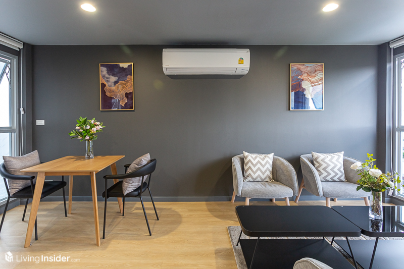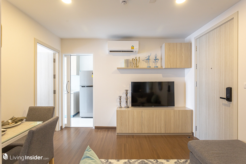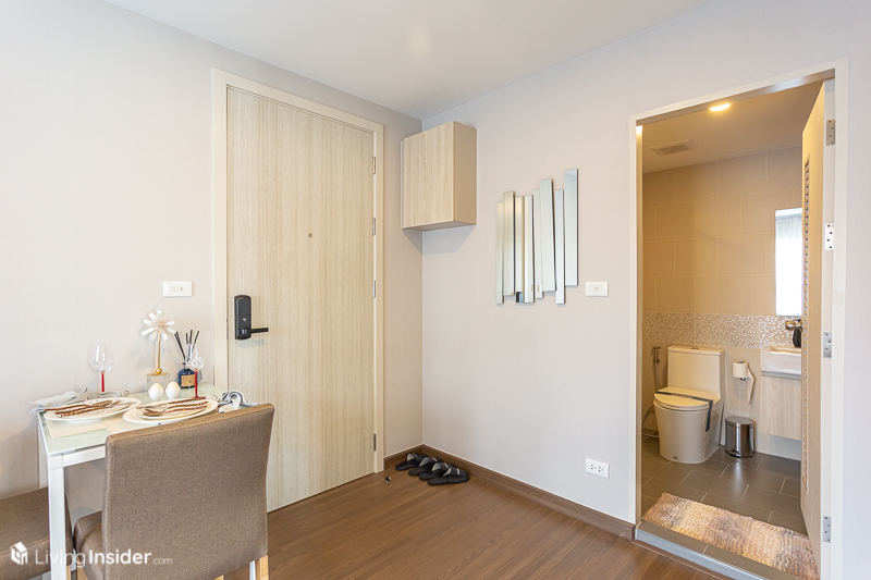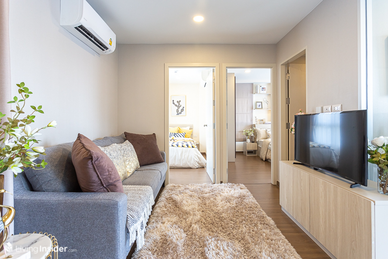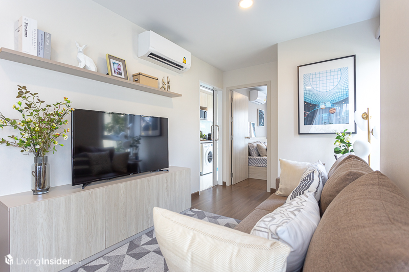 ตัวห้องพักอาศัยขายแบบ Fully Furnished พร้อมอยู่ได้เลย พูดง่ายๆ ว่าได้เกือบทุกอย่างที่เห็นในห้องตัวอย่าง ไม่ว่าจะเป็น Digital Door Lock และเครื่องปรับอากาศ พื้นถึงฝ้าสูง 2.4 เมตร โดยมีให้เลือกหลักๆ ทั้งหมด 3 แบบ ดังนี้