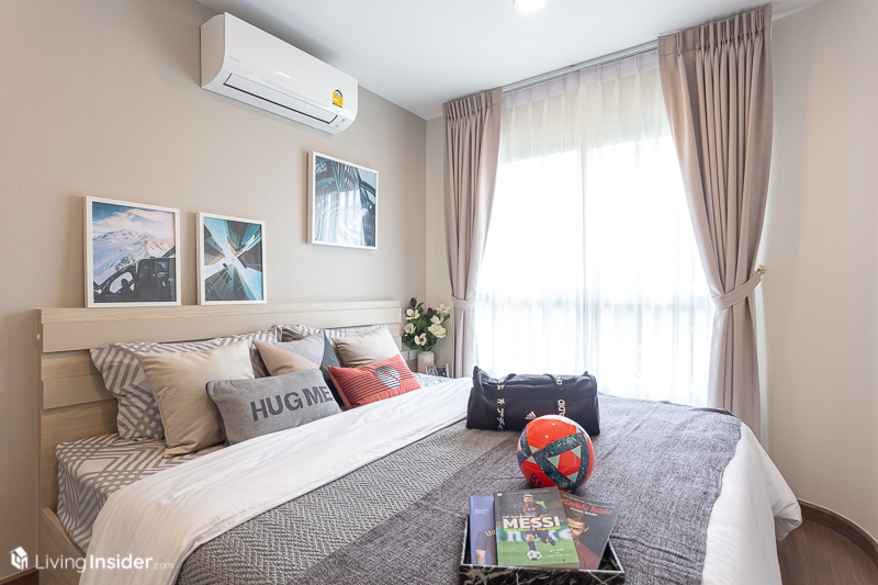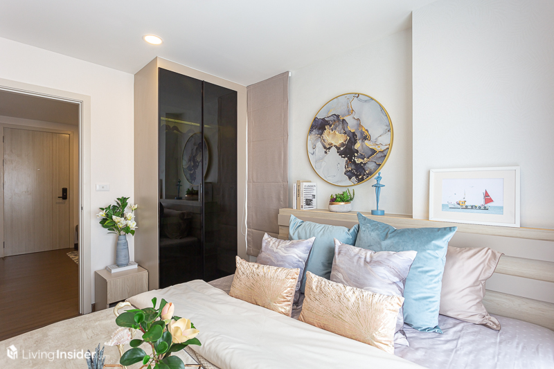 จุดเด่นของโครงการนี้ สำหรับห้องพักอาศัยออกแบบมาเป็น 1 ห้องนอนก็คือกั้นผนังแยกเป็นห้องจริงๆ ที่ไม่ใช่แค่กระจกกั้นซึ่งแบบนี้ห้องนอนจะมีความเป็นส่วนตัวมากขึ้น