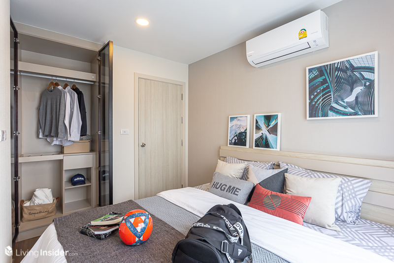 ตรงข้ามบิวท์เป็นตู้เสื้อผ้าติดเพดาน ได้หน้าบานเป็นกระจกสีชา ข้างในมีลิ้นชักและราวแขวนให้ สามารถเก็บเสื้อผ้าได้ประมาณหนึ่ง นอกจากนี้ในห้องนอนทุกยูนิตจะมีอุปกรณ์ Smart Control สำหรับควบคุม การเปิดปิดไฟจุดต่างๆ ในห้องพักจากอุปกรณ์นี้เพียงตัวเดียว อย่างเช่นเวลาเราลืมปิดไฟที่ห้องนั่งเล่นหรือระเบียง เราสามารถใช้เครื่องนี้ปิดไฟได้จากภายในห้องนอน โดยไม่ต้องเดินออกไปปิดด้วยตัวเอง