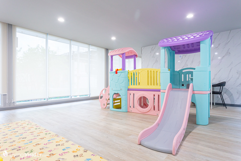 ขณะที่ Facility ให้มาเยอะทีเดียวซึ่งจะกระจายตัวกันอยู่ที่ชั้น 2 และชั้น 8 โดยที่ชั้น 2 จะมี Library และ Kids Room ทั้งสองห้องนี้เชื่อมต่อกัน เพื่อให้ผู้ปกครองและเด็กๆสนุกสนานได้เต็มที่ตัวผู้ปกครองเองก็มีพื้นที่ให้นั่งรอโดยไม่เบื่อ
