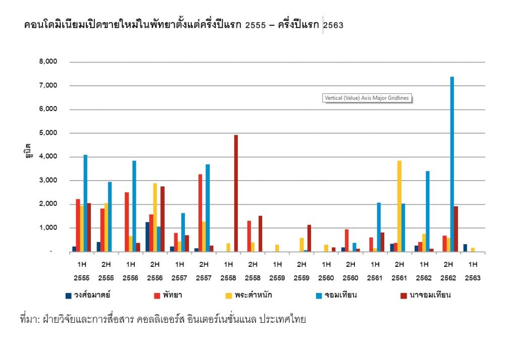 ซึ่งพบว่าช่วงครึ่งแรกของปี 2563 มีคอนโดมิเนียมเปิดขายใหม่ในพื้นที่พัทยาเพียงแค่ 2 โครงการ 480 ยูนิตเท่านั้น บวกกับสถานการณ์การแพร่ระบาดของไวรัสโคโรน่า (COVID-19) ที่ยังคงแพร่ระบาดหนักในหลายประเทศทั่วโลก