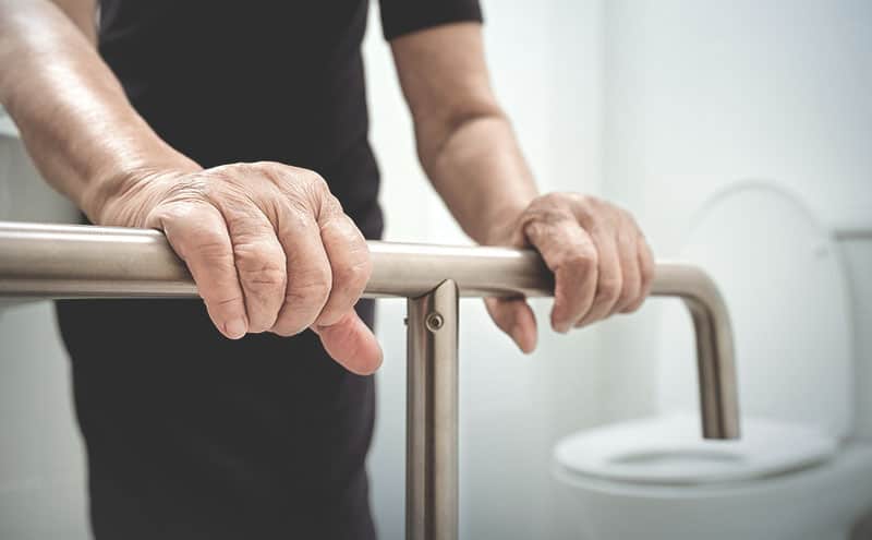 เนื่องจากการทรงตัวที่แย่ลงของผู้สูงอายุ ทำให้แม้แต่ยืนเฉย ๆ ยังโงนเงนง่อนแง่น แค่ใช้กระเบื้องยางหรือปูพรมอาจยังไม่อุ่นใจพอ เราควรเพิ่มราวจับตามริมผนังบ้านไว้ด้วยครับ โดยติดตั้งในระดับที่เหมาะสมกับความสูงของคนแก่ในบ้าน เพื่อเป็นตัวช่วยพยุงไม่ให้ล้มและเป็นหลักค้ำยันระหว่างเดินด้วยครับ ถ้าไม่สะดวกติดราวจับก็หาไม้เท้าช่วยเดินติดบ้านไว้ก็ดีครับ เพื่อความปลอดภัย