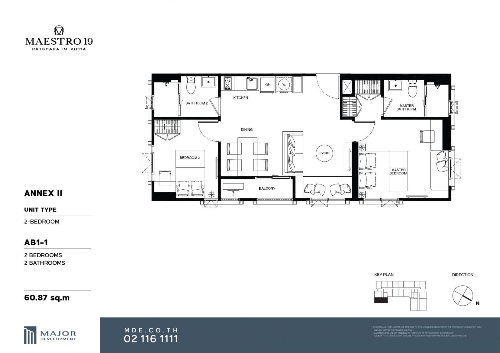 | 2 Bedrooms ขนาด 60.83-61.41 ตารางเมตร |