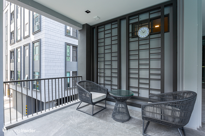 ระเบียงเน้นไปที่ความยาวมากกว่าความกว้าง แต่สามารถวางเก้าอี้ชมวิว หรือวางราวตากผ้าได้