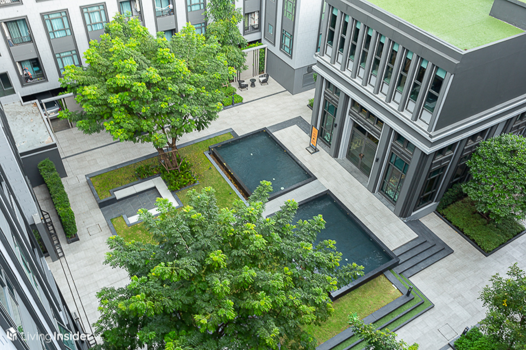 วกกลับลงมาข้างบริเวณรอบโครงการจะมี สวนหย่อมอยู่ต่างจุดต่างๆ ซึ่งสามารถนั่งเล่นนั่งพักผ่อนหย่อนใจได้ ตอนเย็นอากาศคงจะดีน่าดู
