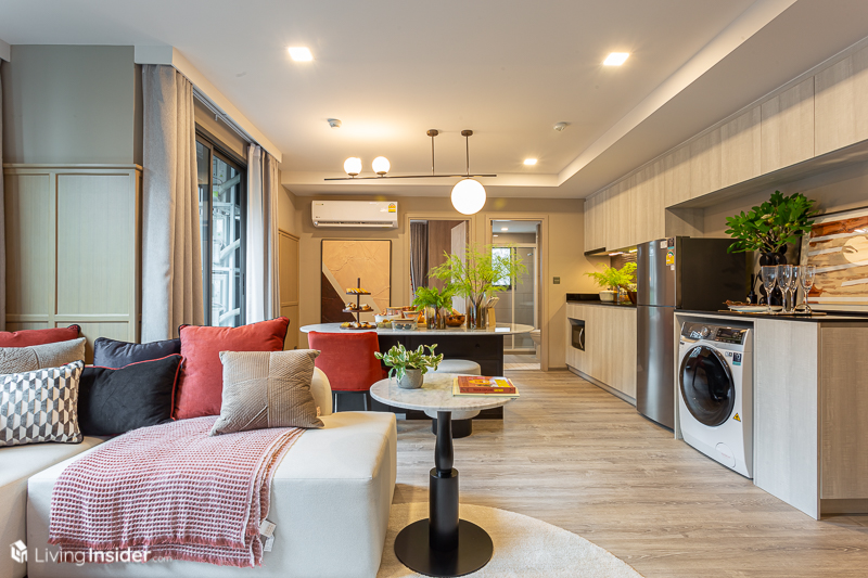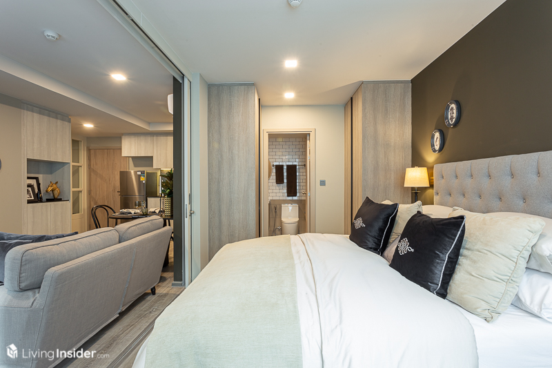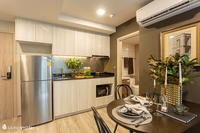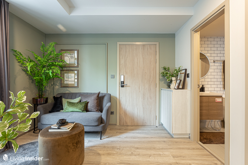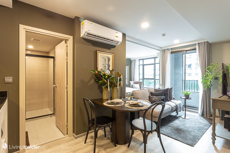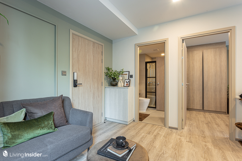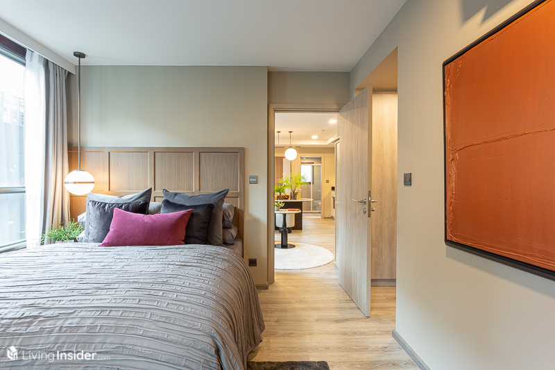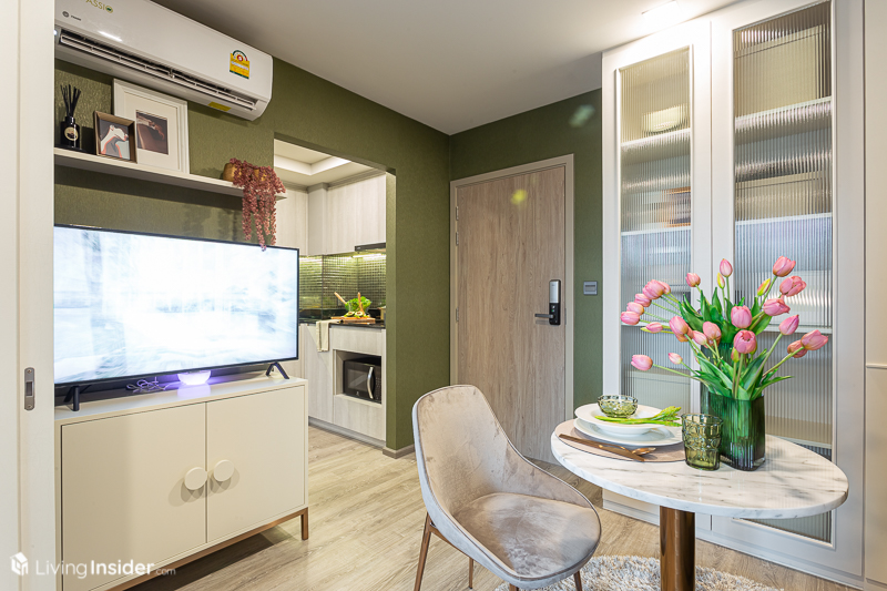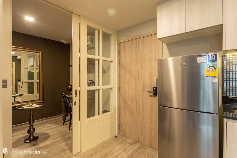 ขณะที่การออกแบบภายใน ทางโครงการมีผังห้องให้เลือกหลายแบบ เพื่อไลฟ์สไตล์ที่แตกต่างของลูกค้าแต่ละคน และได้ห้องหน้ากว้างสูงสุดถึง 12 เมตร* เลยทีเดียว โดยขายแบบ Fully Fitted คือได้ Digital Door Lock เครื่องปรับอากาศ และอื่นๆ ที่จะบอกตอนพาไปชมห้องตัวอย่าง โดยมีห้องให้เลือกทั้งหมด 3 แบบ คือ