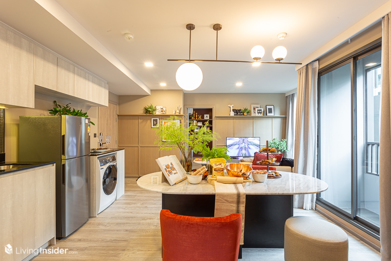 มาถึงห้องสุดท้ายแล้ว 2 Bedrooms ขนาด 60.87 ตารางเมตร กับคอนเซ็ปต์ The Baker ซึ่งส่วนใหญ่แล้วห้องนี้มักอยู่กันเป็นครอบครัว พ่อ แม่ ลูก จึงเน้นที่ห้องครัวไว้สำหรับทำอาหารและขนมให้สมาชิกในบ้าน นั่งกินกันแบบพร้อมหน้าพร้อมตา