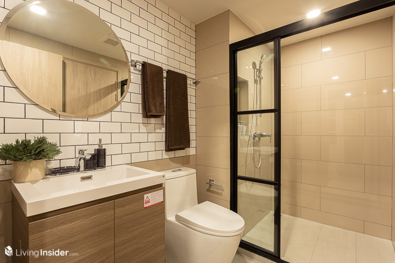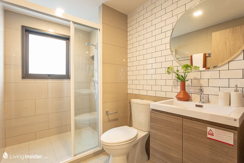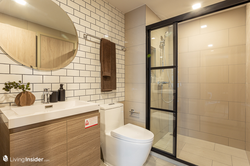 ติดกันเป็น ห้องน้ำ รูปแบบเหมือนกับห้องแรก ขนาดยังคงกว้างขวางช่วยให้การใช้งานสะดวก และมีสุขภัณฑ์ให้ครบครัน และพิเศษตรงที่สามารถเข้าออกได้สองทาง คือฝั่งห้องนั่งเล่นและฝั่งห้องนอน เวลามีเพื่อนมาหาได้ไม่ต้องเข้าห้องนอน ตัวผู้อยู่เองก็ได้ความสะดวกสบาย