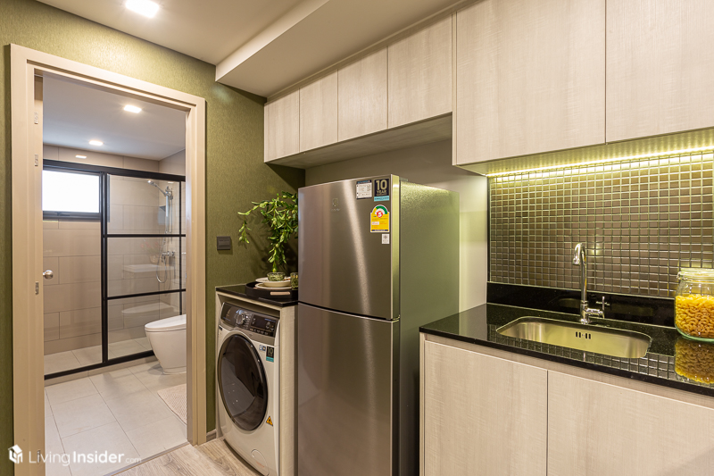 ซึ่งไฮไลท์ที่ว่าคือขนาดของ ห้องครัว ที่ให้มาค่อนข้างกว้างขวางจึงมีพื้นที่เหลือ ไว้ให้สำหรับสัตว์เลี้ยงแสนรักของเรา อย่างถ้าใครเลี้ยงแมวเหมาะอย่างมาก กับการนำคอนโดแมวไว้ริมหน้าต่างตรงระเบียง เพราะอย่างที่รู้กันว่าพวกเค้าชอบมองวิวภายนอก ข้างๆ กันค่อยเป็นมุมสำหรับวางอาหารและน้ำ