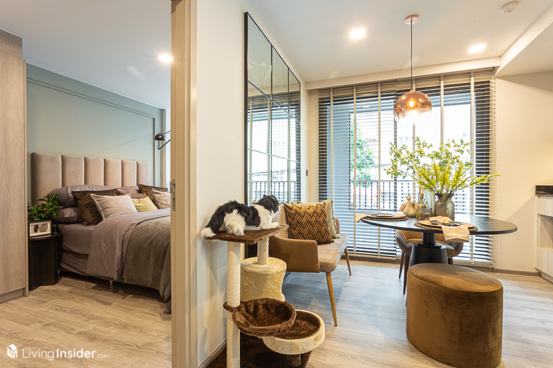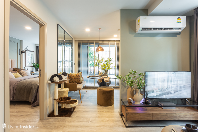 ห้องต่อไปคือชอบมากกกกก เลิฟมากกกกกกก เพราะมาใน คอนเซ็ปต์ Cat Lover ตกแต่งโดยเน้นความเรียบง่าย ของตกแต่งไม่เยอะ เฟอร์นิเจอร์น้อยชิ้นแต่ครบทุกฟังก์ชัน สัตว์เลี้ยงของเราได้ไม่ทำลายข้าวของจนพัง กับ 1 Bedroom ขนาด 39.77 ตารางเมตร