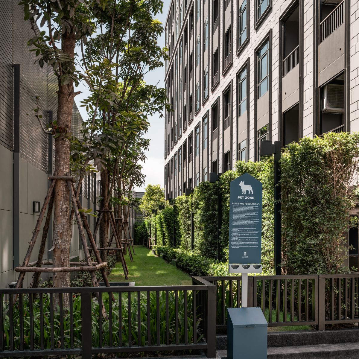 นอกจากนี้ยังมี โซนสำหรับสัตว์เลี้ยงด้วย!! แม้พื้นที่ไม่ได้กว้างมากนักแต่มีความยาวประมาณหนึ่ง สามารถปล่อยน้องหมาน้องแมวมาวิ่งเล่นโดยไม่ต้องใช้สายจูงได้เลย แต่อย่าลืมช่วยกันรักษาความสะอาดด้วยนะ