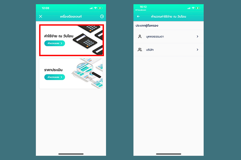 หลังจากนั้นกดเลือก ค่าใช้จ่าย ณ วันโอน เพื่อคำนวณกันต่อเลย ซึ่งมีให้เลือกทั้งบุคคลธรรมดาและรูปแบบบริษัท